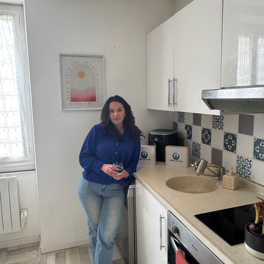 Je voulais une solution qui me permette de boire une eau agrĂ©able au quotidien, sans avoir Ă transporter des packs dâeau, sans accumuler de bouteilles en plastique et sans compliquer mon quotidien.